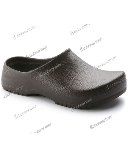 Obermaterial: Alpro-Schaum Fussbett: Naturkork/Textil Sohle: Alpro-Schaum Seine kompakte Form besteht aus wasser- und schmutzabweisendem Polyurethan, das zudem öl- und fettbeständig ist. Dieses extrem beständige Material kann bei bis zu 60° Celsius gewaschen und effektiv desinfiziert werden. Durch seine Beständigkeit und Hygieneeigenschaften eignet er sich ideal für die Küche, Medizin und Lebensmittelindustrie – aber auch als praktischer Garten-Clog. Das anatomisch geformte Kork-Latex-Fußbett ist mit feuchtigkeitsableitendem Textil-Gewebe bezogen. Zur einfachen Reinigung ist es auswechselbar und kann bei bis zu 30° Celsius gewaschen werden. Alle Super Birki Modelle wurden nach EN ISO 20347:2012 OB E (Kategorie SRC) zertifiziert.